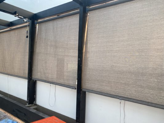 Bạt che nắng mưa ban công, mành che nắng ban công và lưới che nắng ban công có chất liệu bạt Hàn Quốc có độ cản sáng, che mưa 100%.