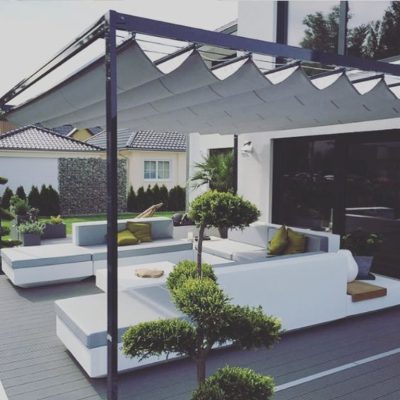 + Loại 2: Loại vải bạt. Chất liệu này sử dụng cho các loại rèm trần che nắng mái kính ở ngoài trời ở các quán bia, quán cafe ..v..v
