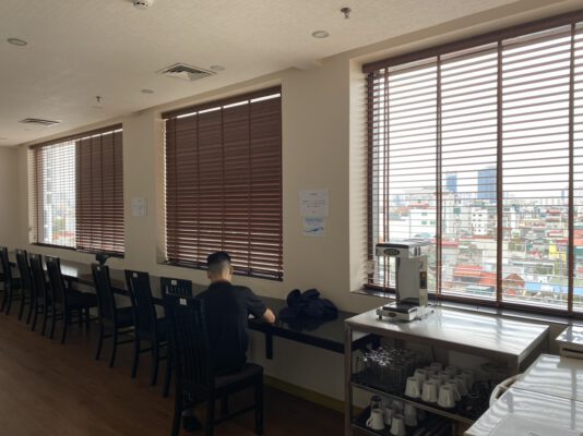 Rèm có thể xoay lật lá 180 độ, lá nhựa giả gỗ đóng kín giúp cản nắng, cản nhiệt cho căn phòng. Lá gỗ lật giúp lấy sáng và gió cho không gian phòng.