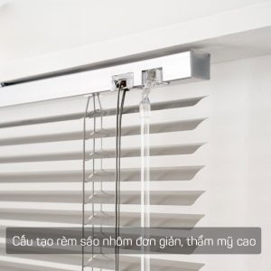 Rèm sáo nhôm rất linh hoạt trong cách điều chỉnh ánh sáng , rất nhẹ. có nhược điểm là dễ gập gây (khó phục hồi nếu không biết sử dụng). Tuy có giá thành rẻ nhất nhưng không bền, nhất là khi nhà có trẻ nhỏ hiếu động – Nên xa tầm với của trẻ, …. Gọn gàng nhất, dễ dàng lắp lọt khung chỉ với 40mm. Dễ dàng quan sát bên ngoài khi không cần điều chỉnh góc xoay hoặc nâng hạ rèm.